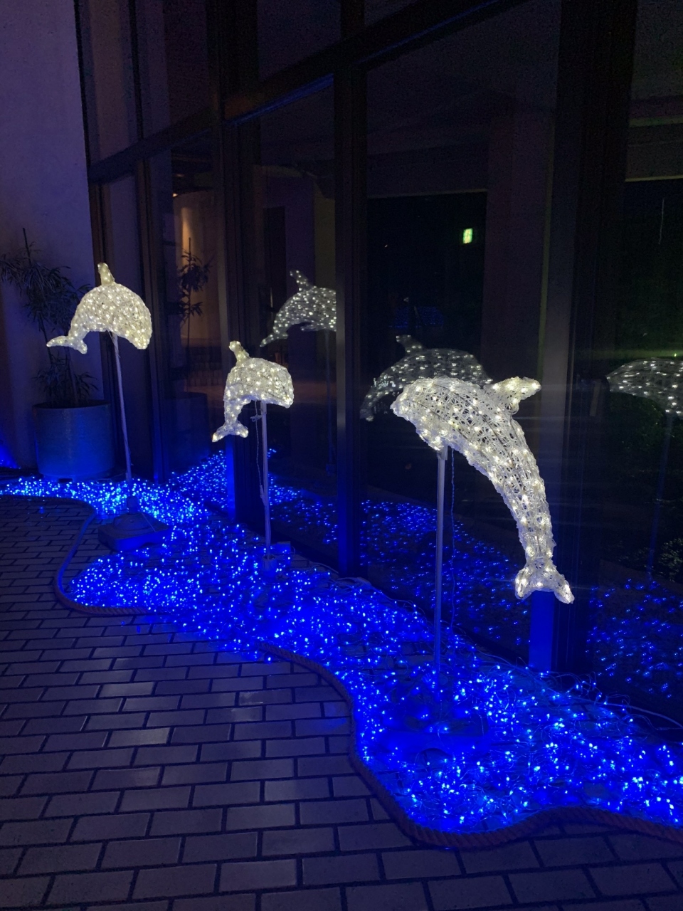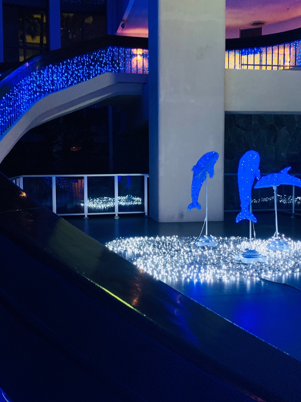 ホテルの館内 夜は イルカの ブルーのイルミネーションが キレイでした