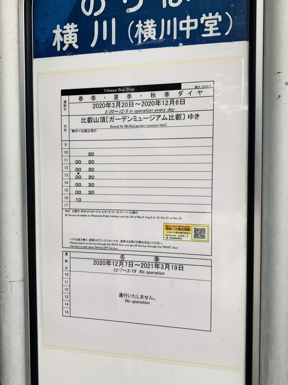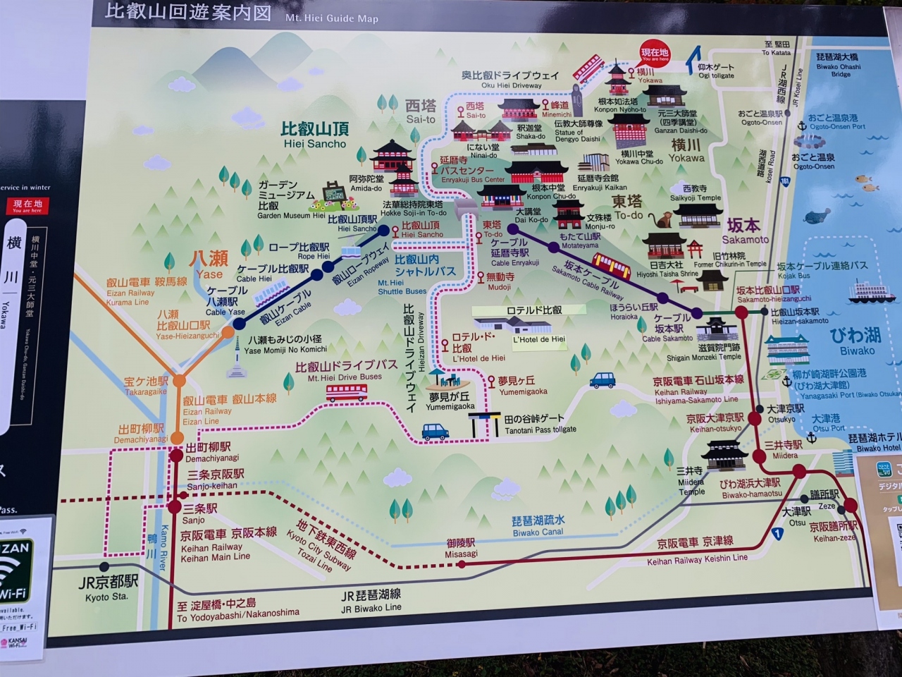 「横川」 「峰道」「西塔」「延暦寺バスセンター」「東塔」「比叡山山頂」 に移動できます。