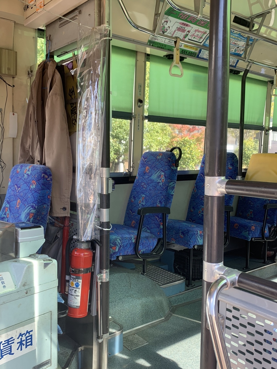 バスの車内は 都内のバスなどと比較すると、若干…古さを感じますね。