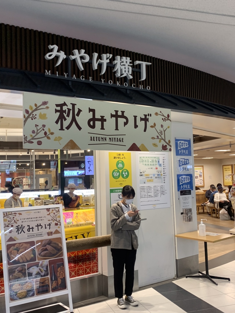 今は ちょうど 〈秋みやげ〉で、いろいろな おみやげが あって 迷います。