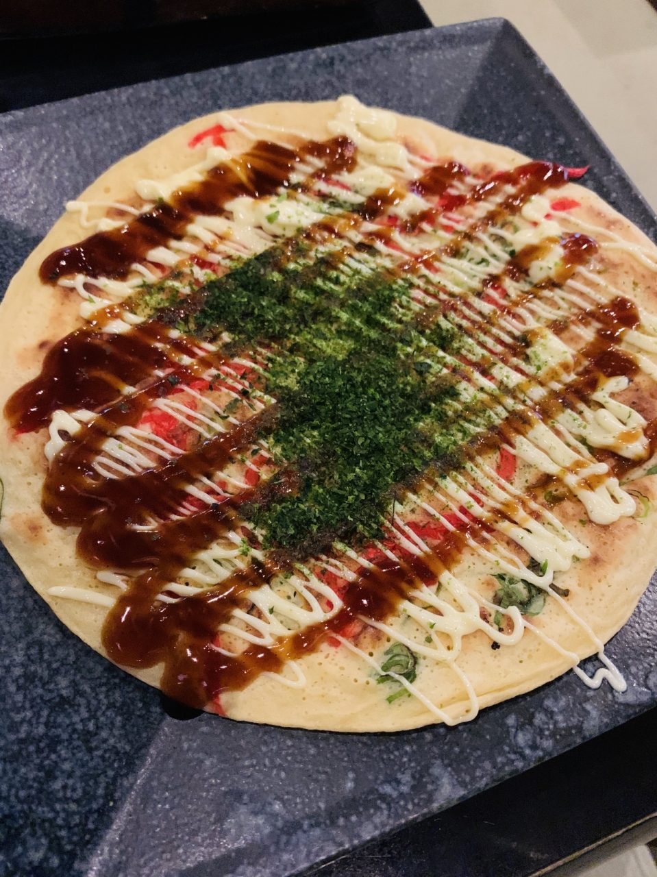 薄いお好み焼きのような お料理は ぬるいのが 残念…