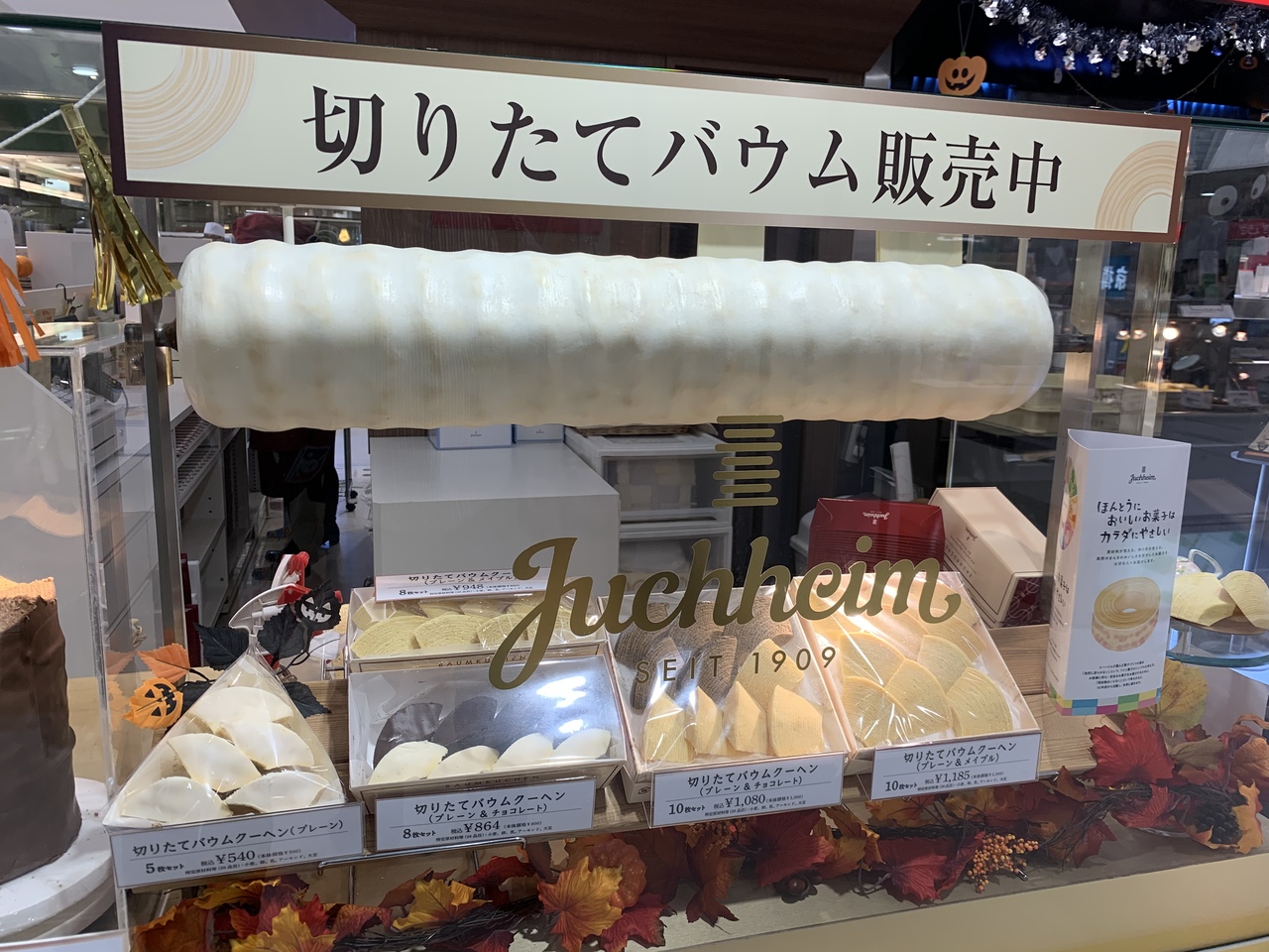 店頭には 〈切りたてバウム販売中〉 と 目立っています。