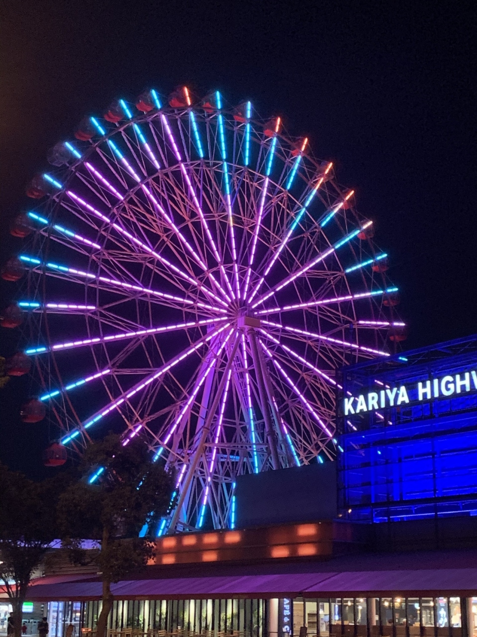 「伊勢湾岸自動車道 」で 観覧車が目立っている 「刈谷ハイウェイオアシス」に 休憩のために 寄りました。