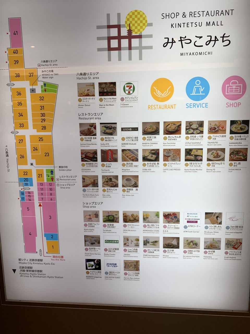 京都のおみやげを買ったり、カフェで 休憩したり お食事したりと 便利です。