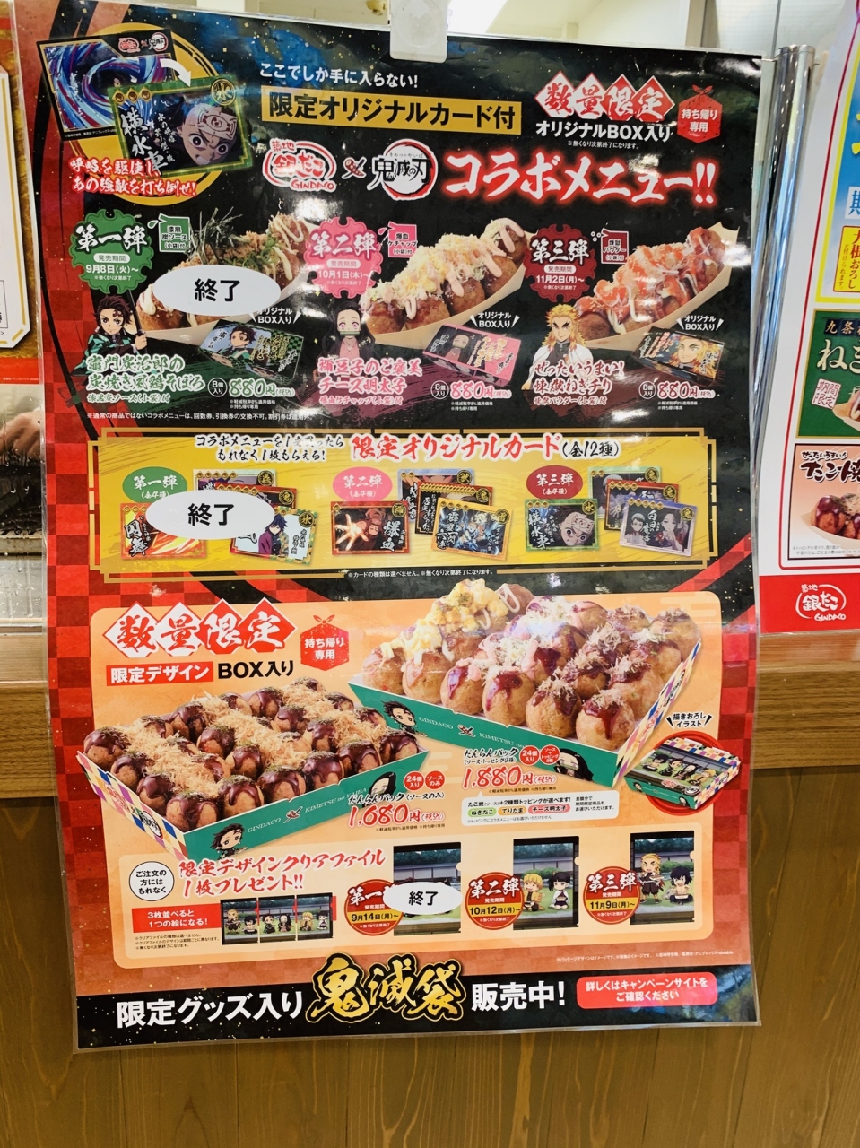 今なら「築地銀だこ」 X 「鬼滅の刃」 コラボメニュー があります。
