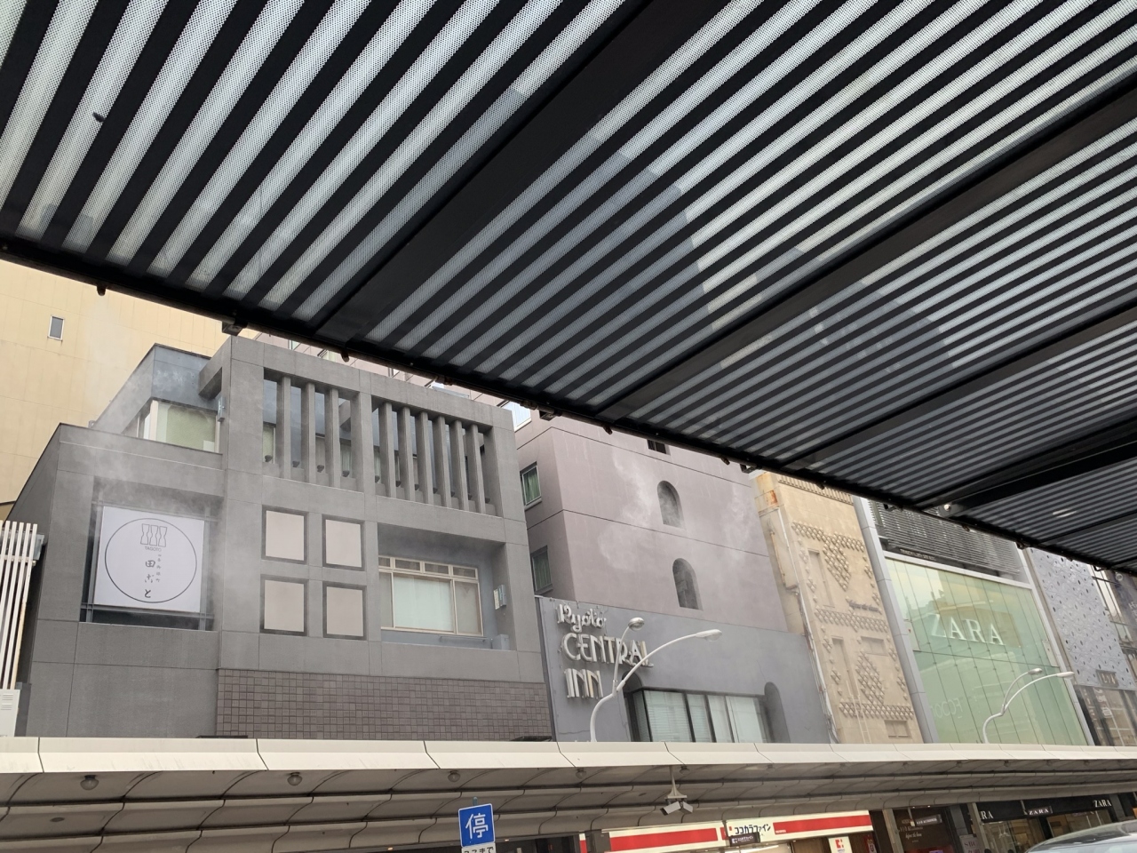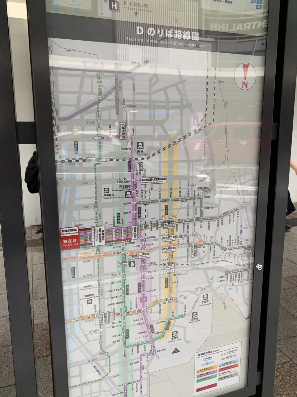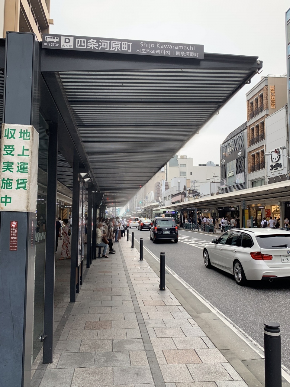 「四条通り」のバス停 「四条河原町」で バスを待っているときに、