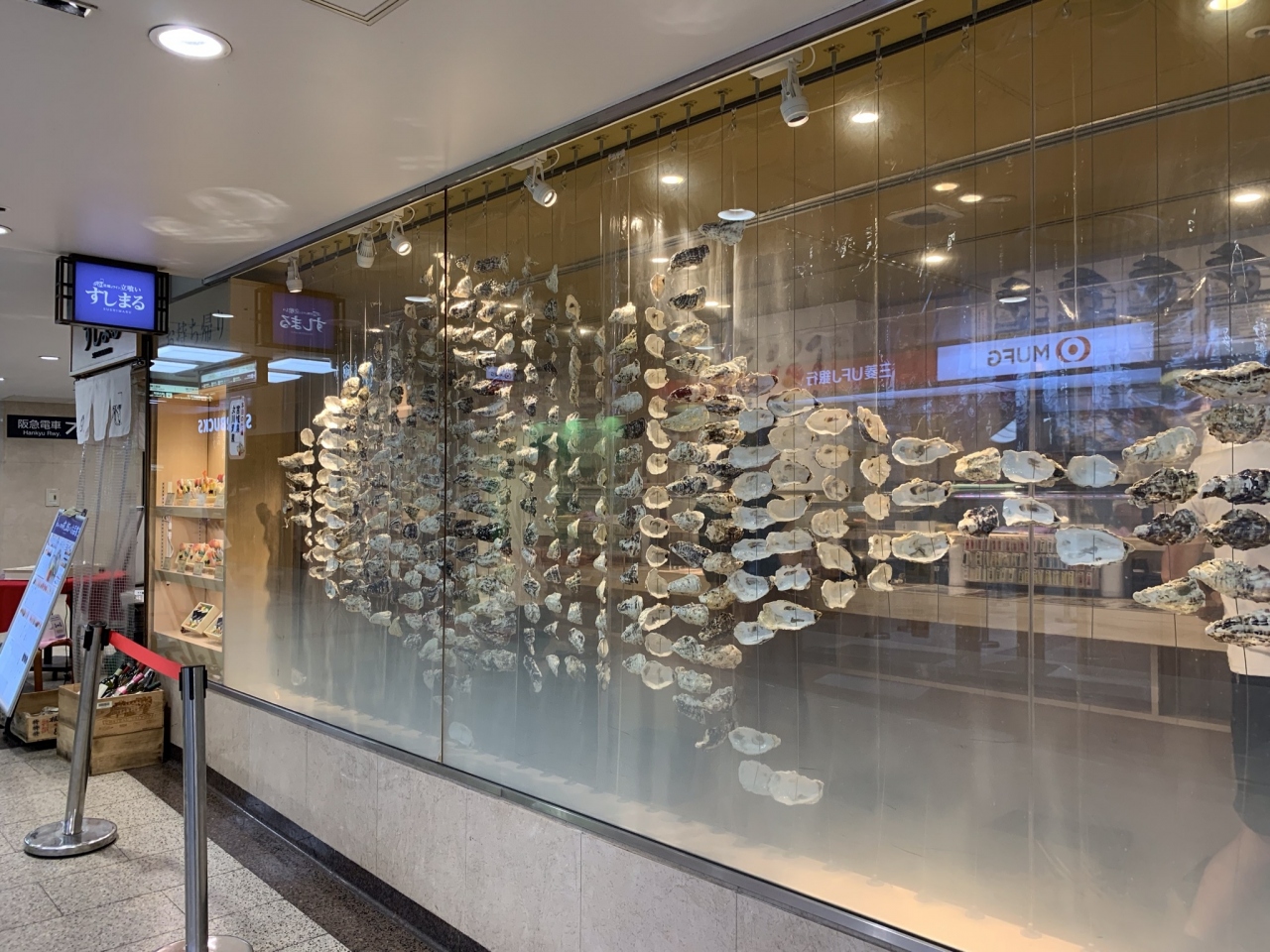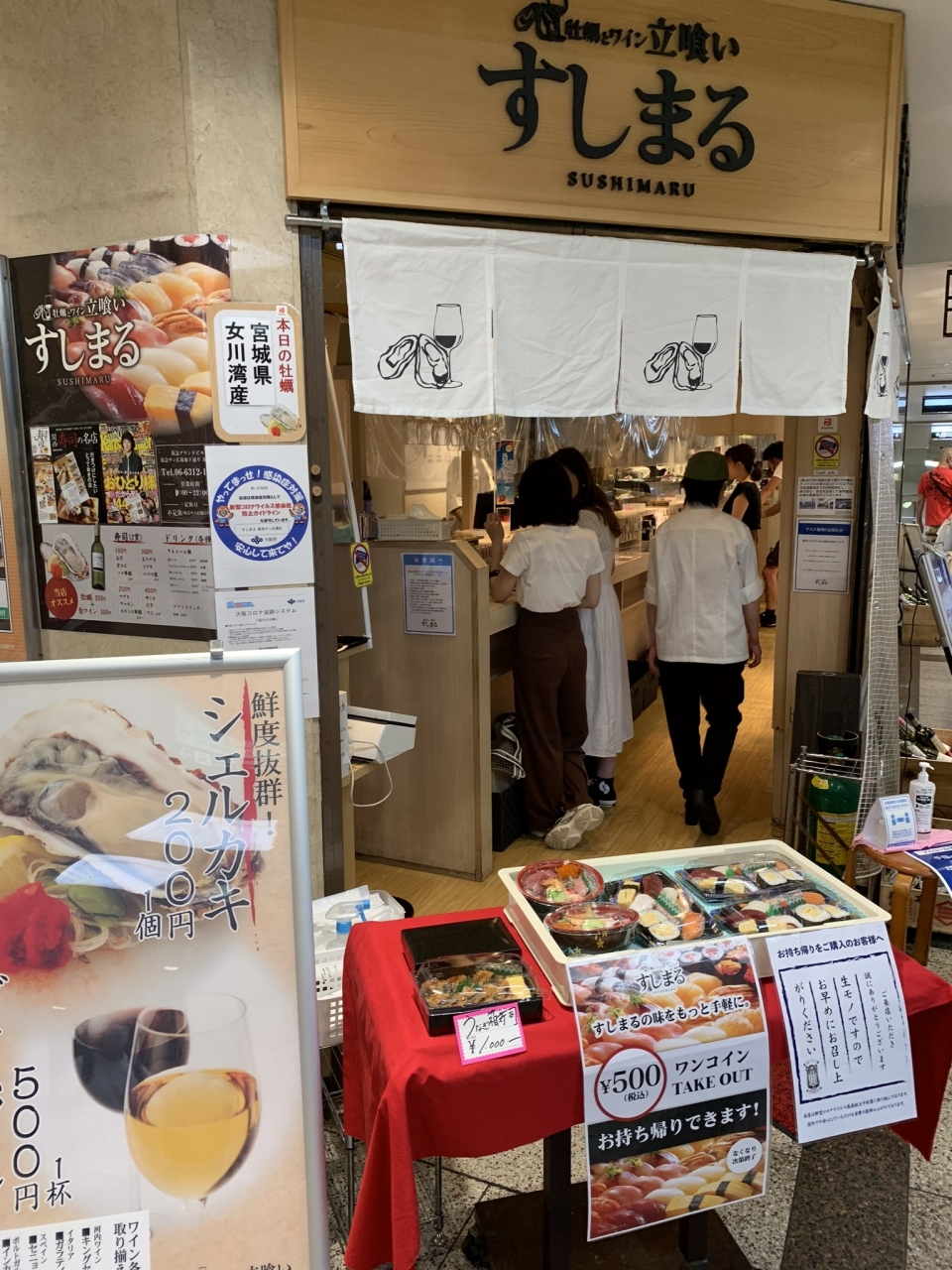 大阪 「 阪急百貨店」の近く「阪急サン広場」にある 【 すしまる 】 は 立ち食いのお寿司屋さん。