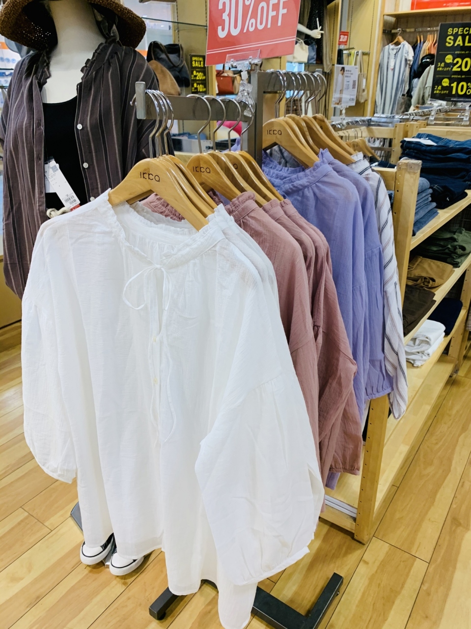 このお店は、綿100パーセントの ブラウスなどのアイテムが 何点かあって、嬉しかった。