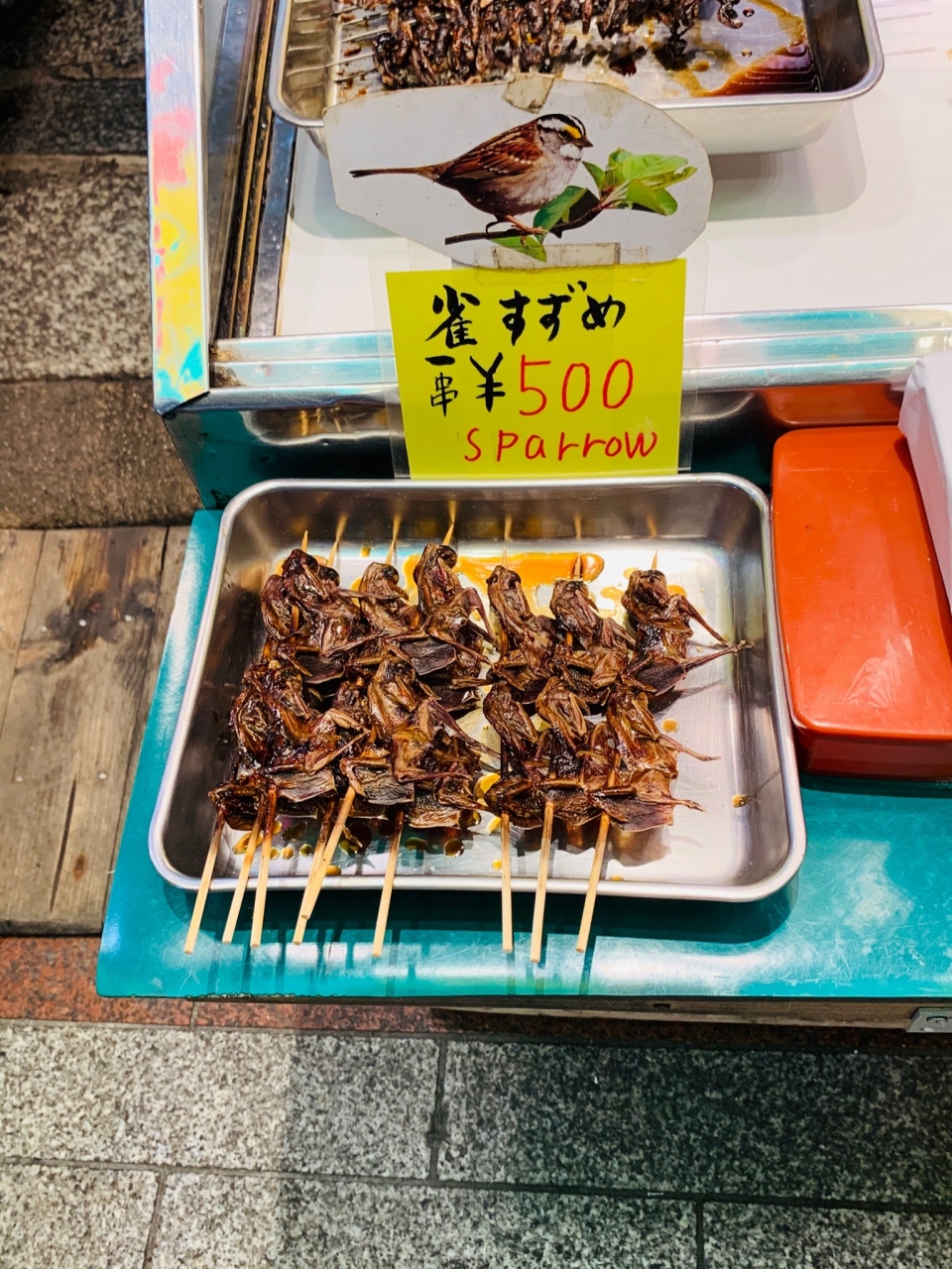 よく見たら 〈 すずめ 雀 〉 1串 ¥500 で 売ってました。いいんでしょうか?