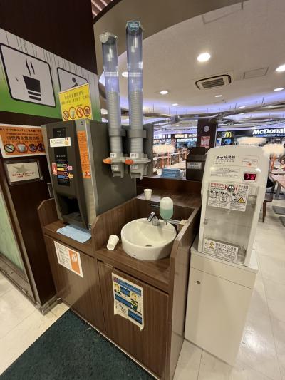 そのフードコートの端には お茶・お水以外に 「 浄水給湯器 」がありました。