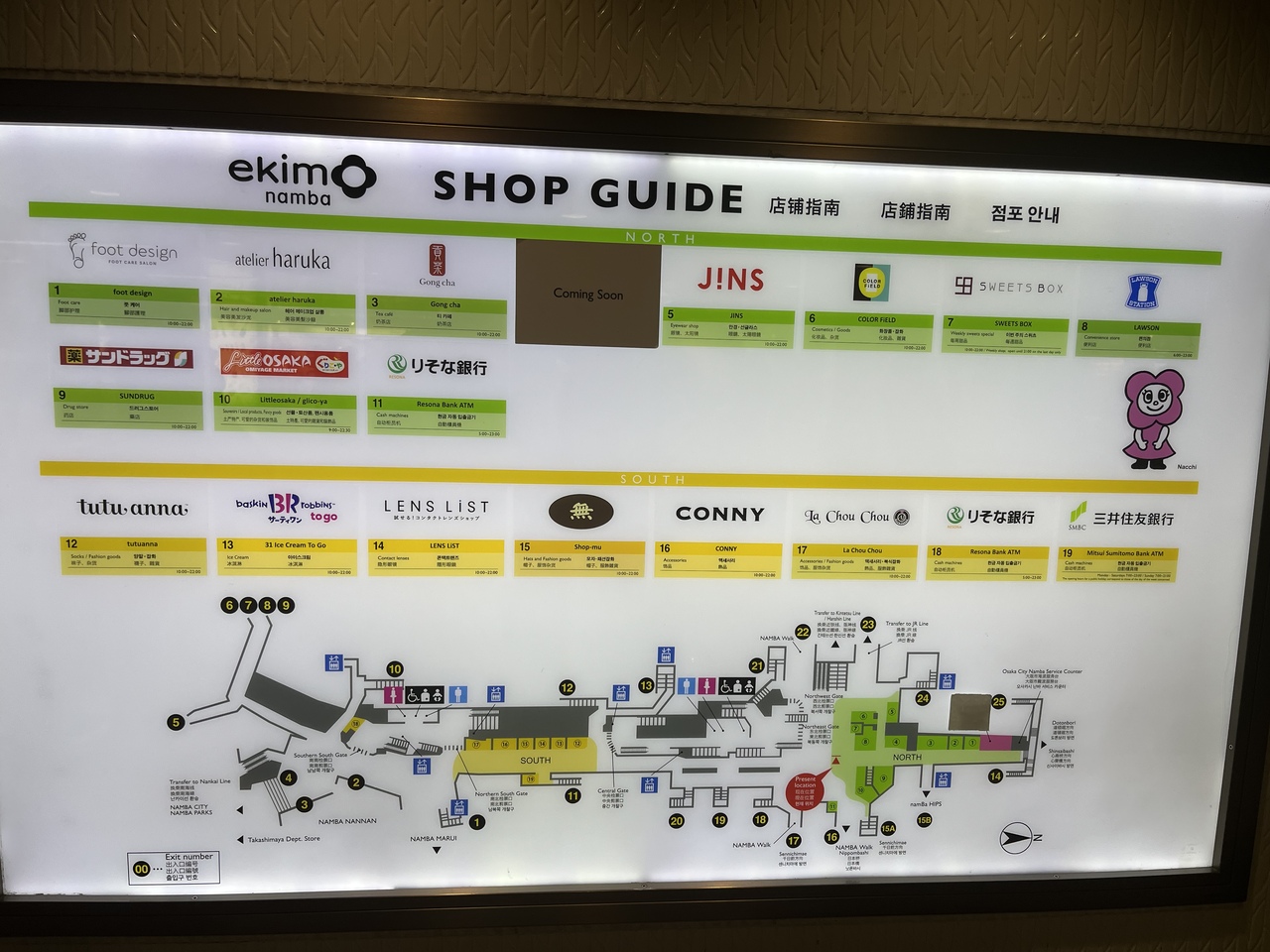 こちら【 ekimo なんば 】は〈NORTH ゾーン〉と〈SOUTH ゾーン〉があって