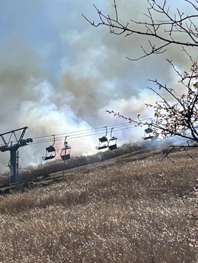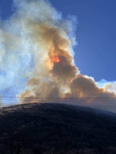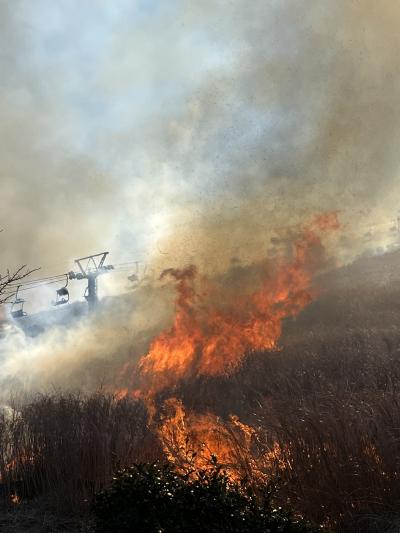 「山焼き」がまるで 山火事のようで、炎が🔥激しくて