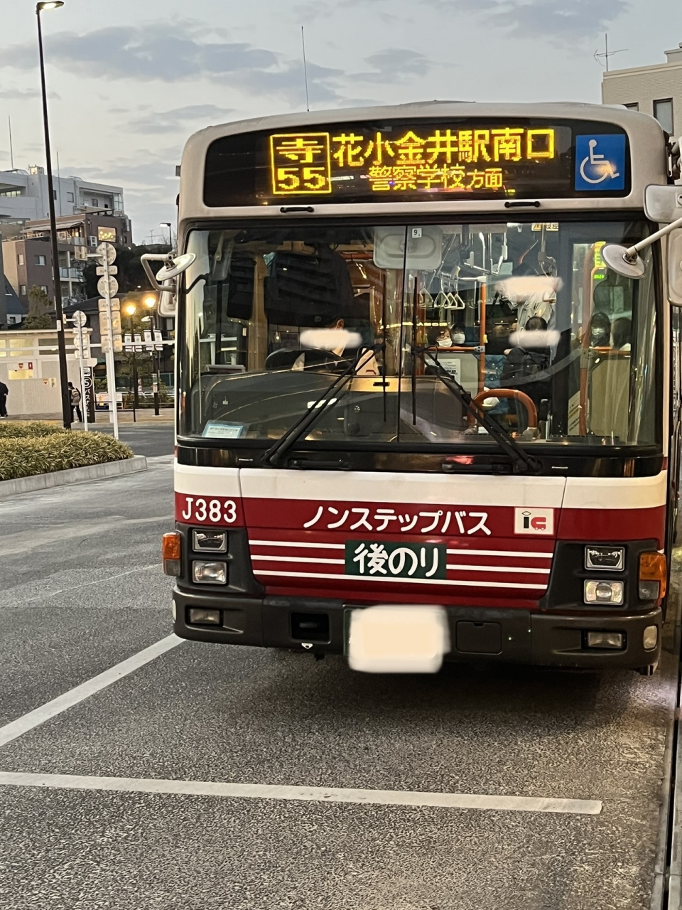 お写真は 国分寺駅「ミーツ」前の「花小金井駅南口」行きのバスです。