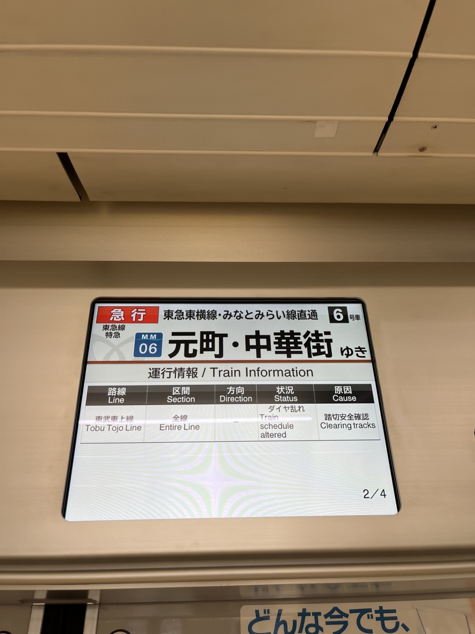 「東急東横線・みなとみらい線」直通の【 東京メトロ 副都心線 】でした。