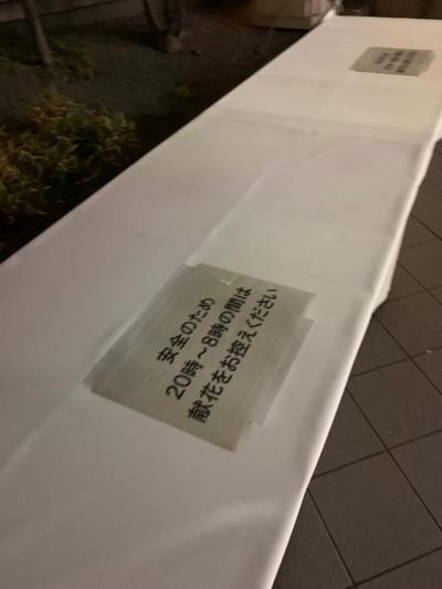 『20時〜8時の間は献花をお控えください』と書かれていました。