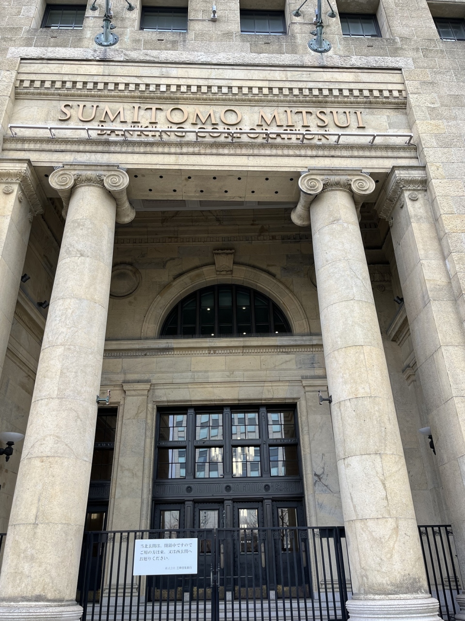 「肥後橋」と「淀屋橋」の近くにある 【 三井住友銀行 大阪本店 】。