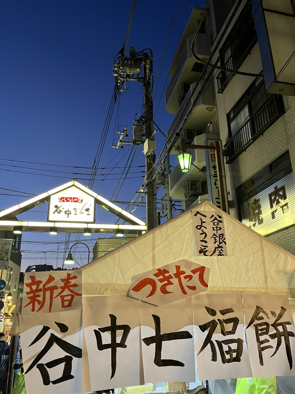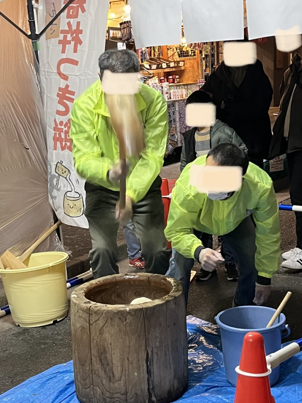 〈新春餅つき大会〉「つきたて谷中七福餅」です