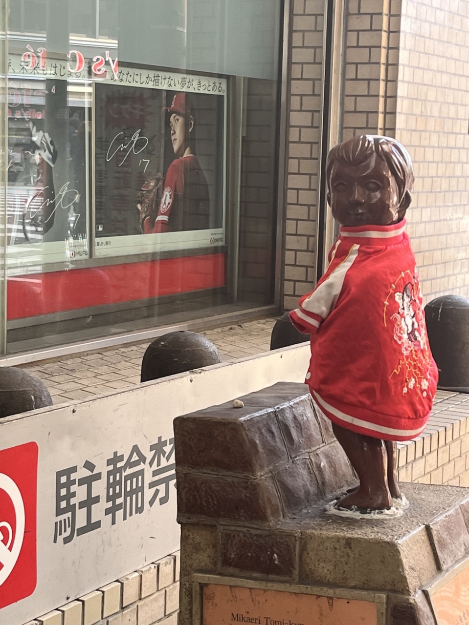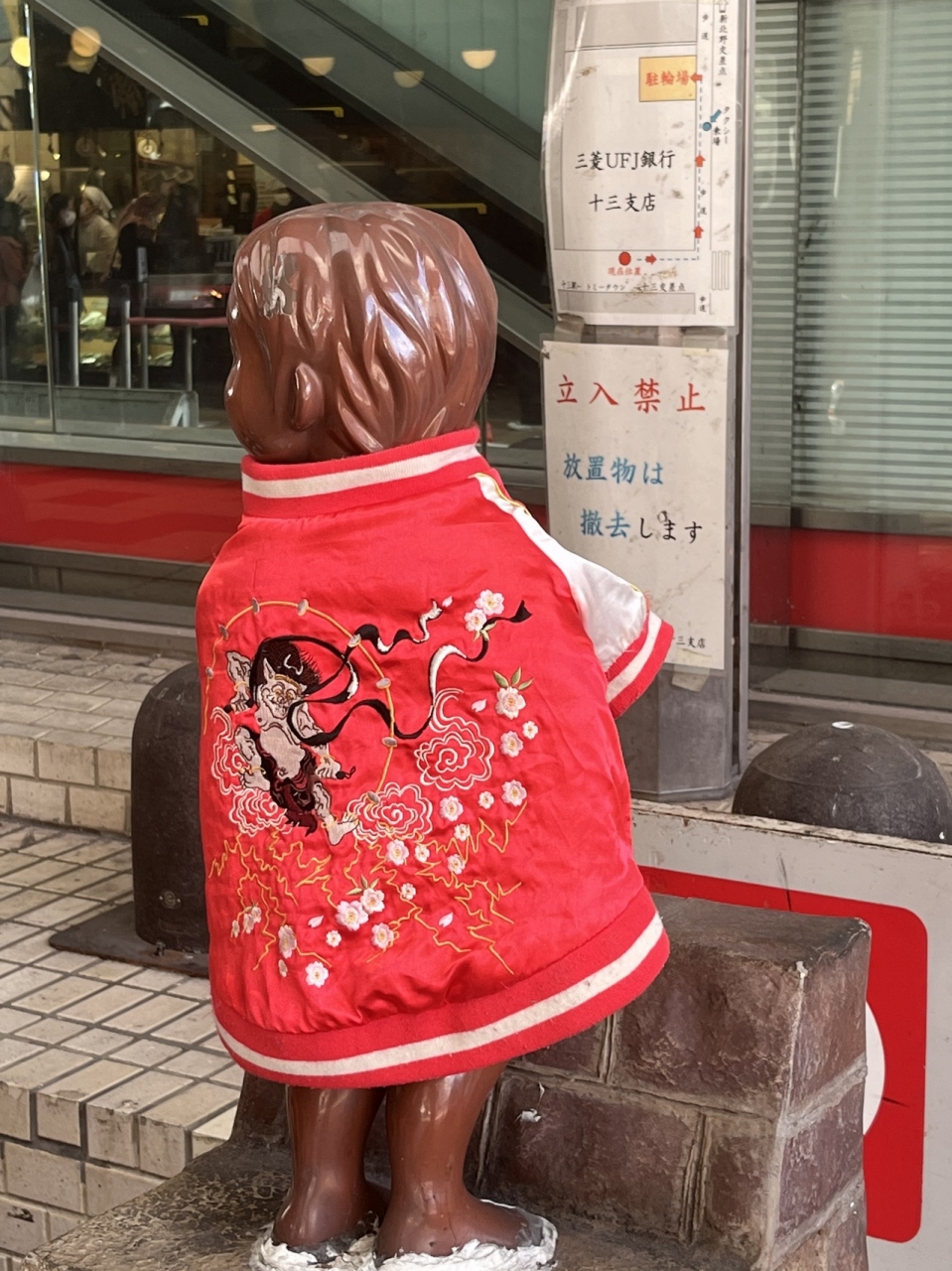 今回 最初は 昼間行ったのですが、「見返りトミー君」は スカジャン 着ていました。
