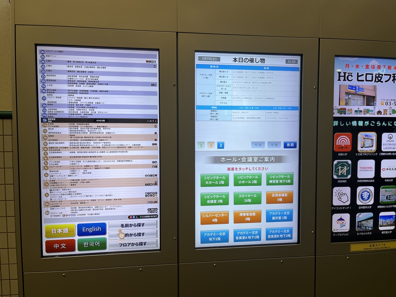区役所・区民施設・大ホール・小ホール などのほか 観光インフォメーションもありました。
