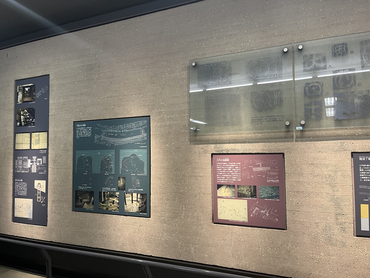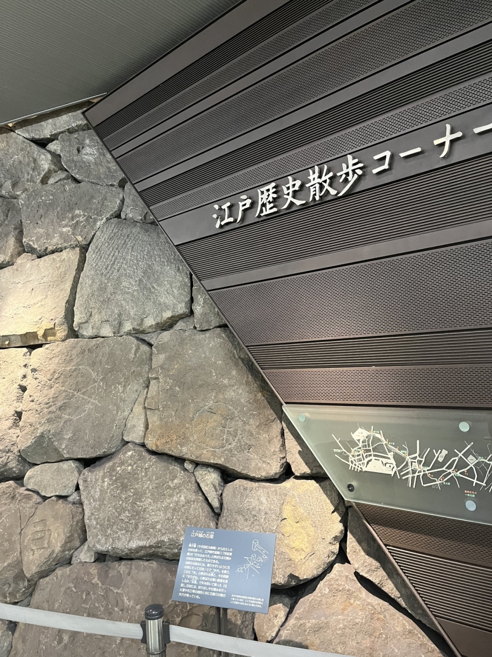 駅構内なので、石垣が 天井に突き刺さっているように見えて ちょっと 不思議な気分に…