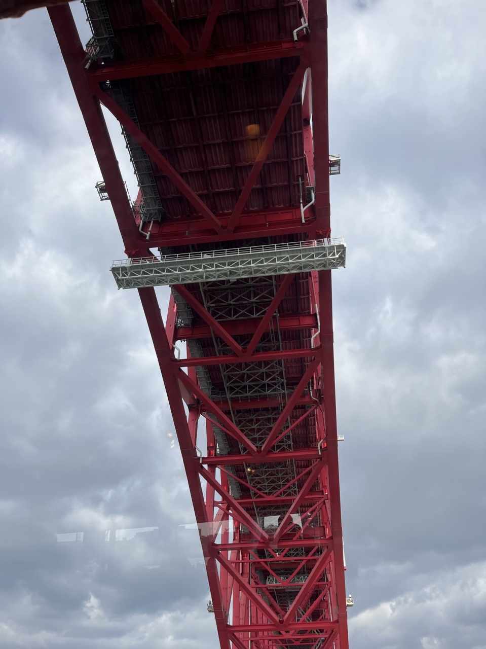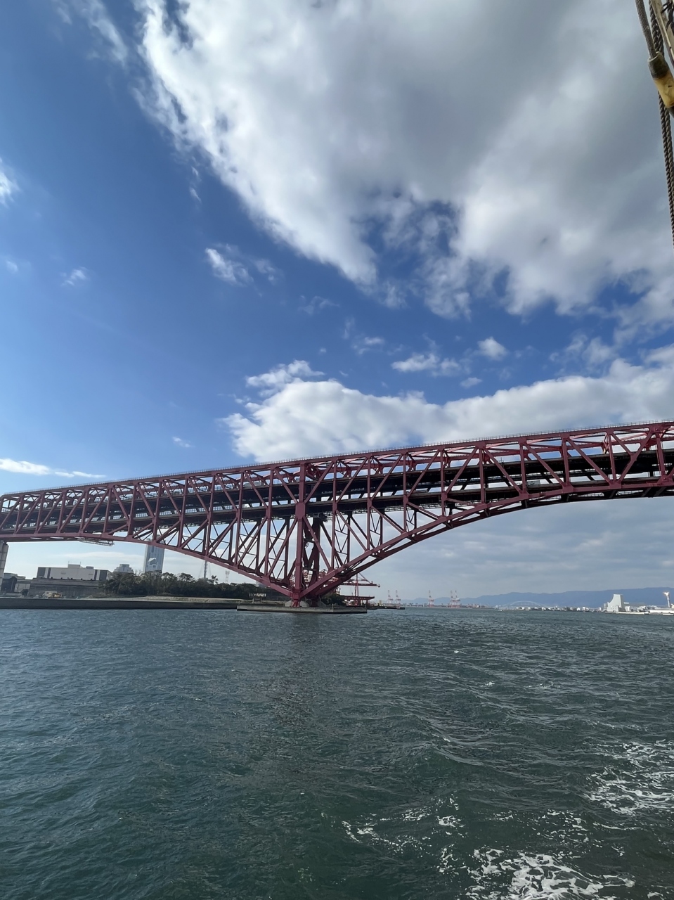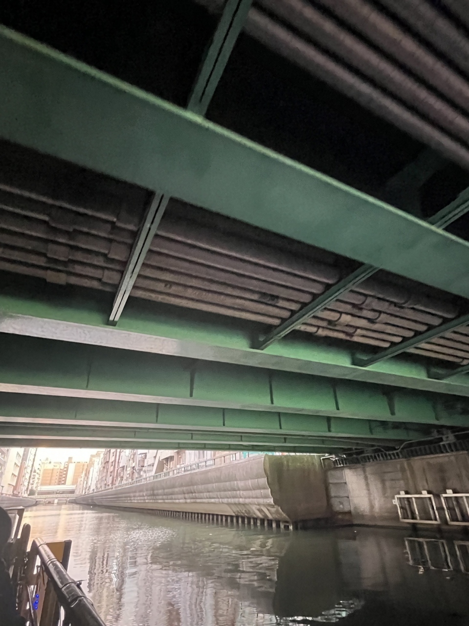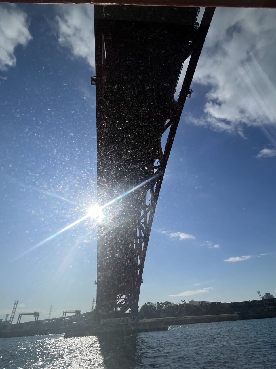 緑色の橋の下を クルーズ船で くぐり抜けたので、