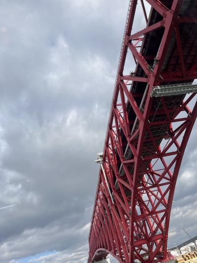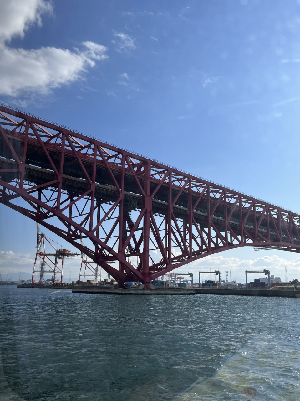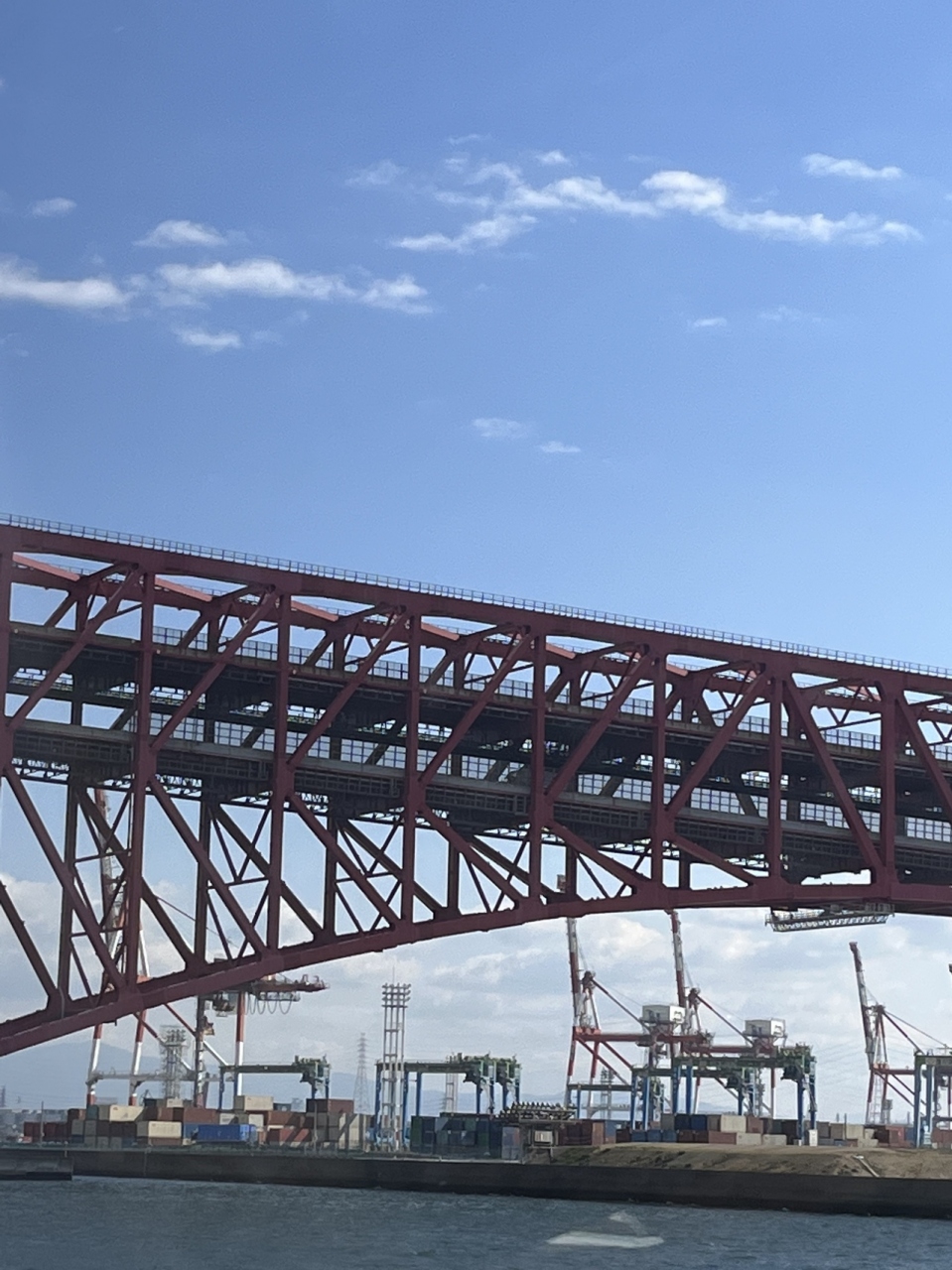 大阪市内のベイエリア・港区と南港を結ぶ 真っ赤な【港大橋 】