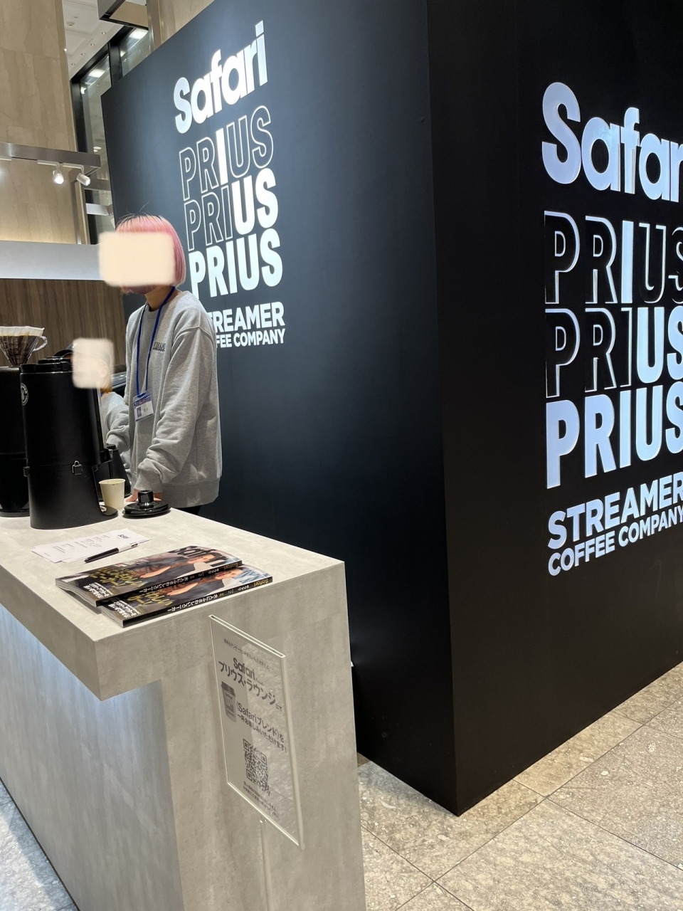 その横「プリウス・ラウンジ」では アンケートに答えると コーヒーが いただけるようでした。