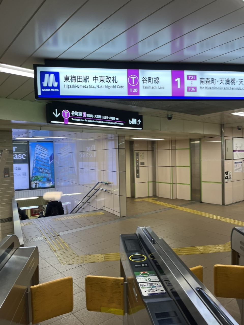 「東梅田駅」から「谷町四丁目駅」まで 乗車しました。