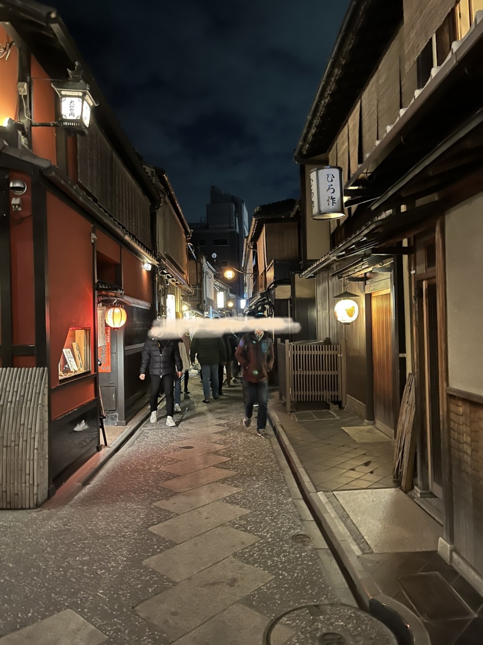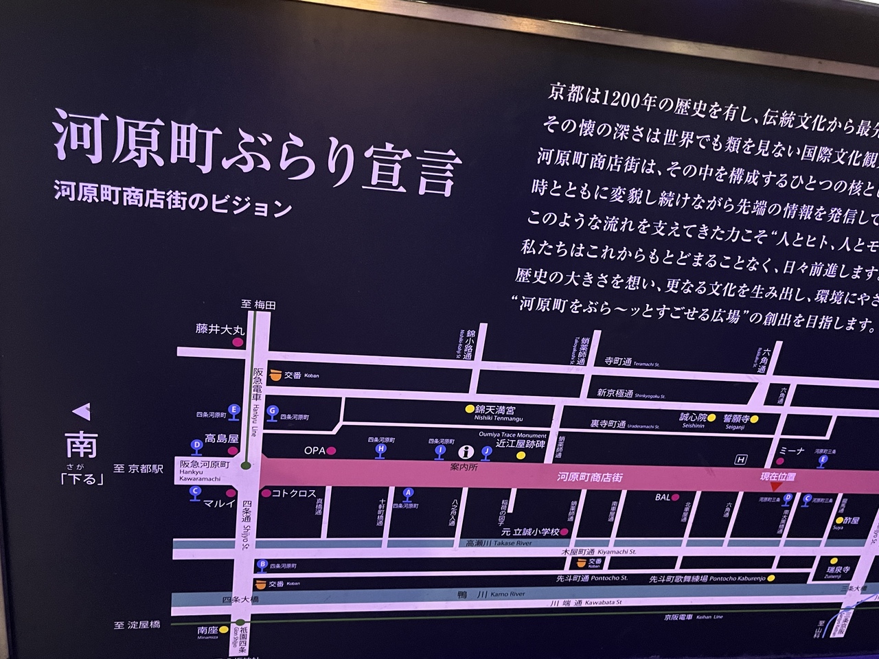 「祇園商店街」入口の門には「漢検・漢字博物館・図書館」と書かれています。