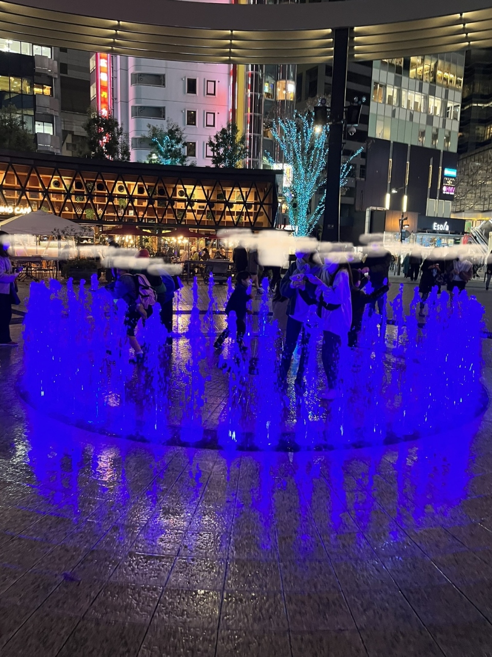 高く噴き出した 噴水の中 に取り残されて 出られない子どもたち と ブルーのイルミネーション