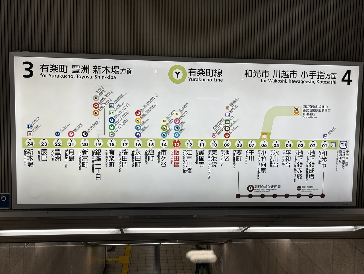 この時は「飯田橋駅」から「小竹向原駅」まで 利用しました。