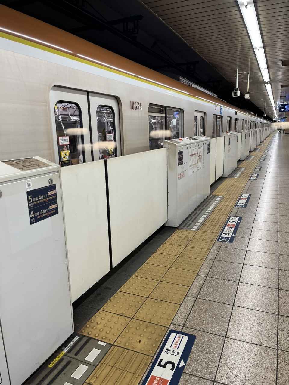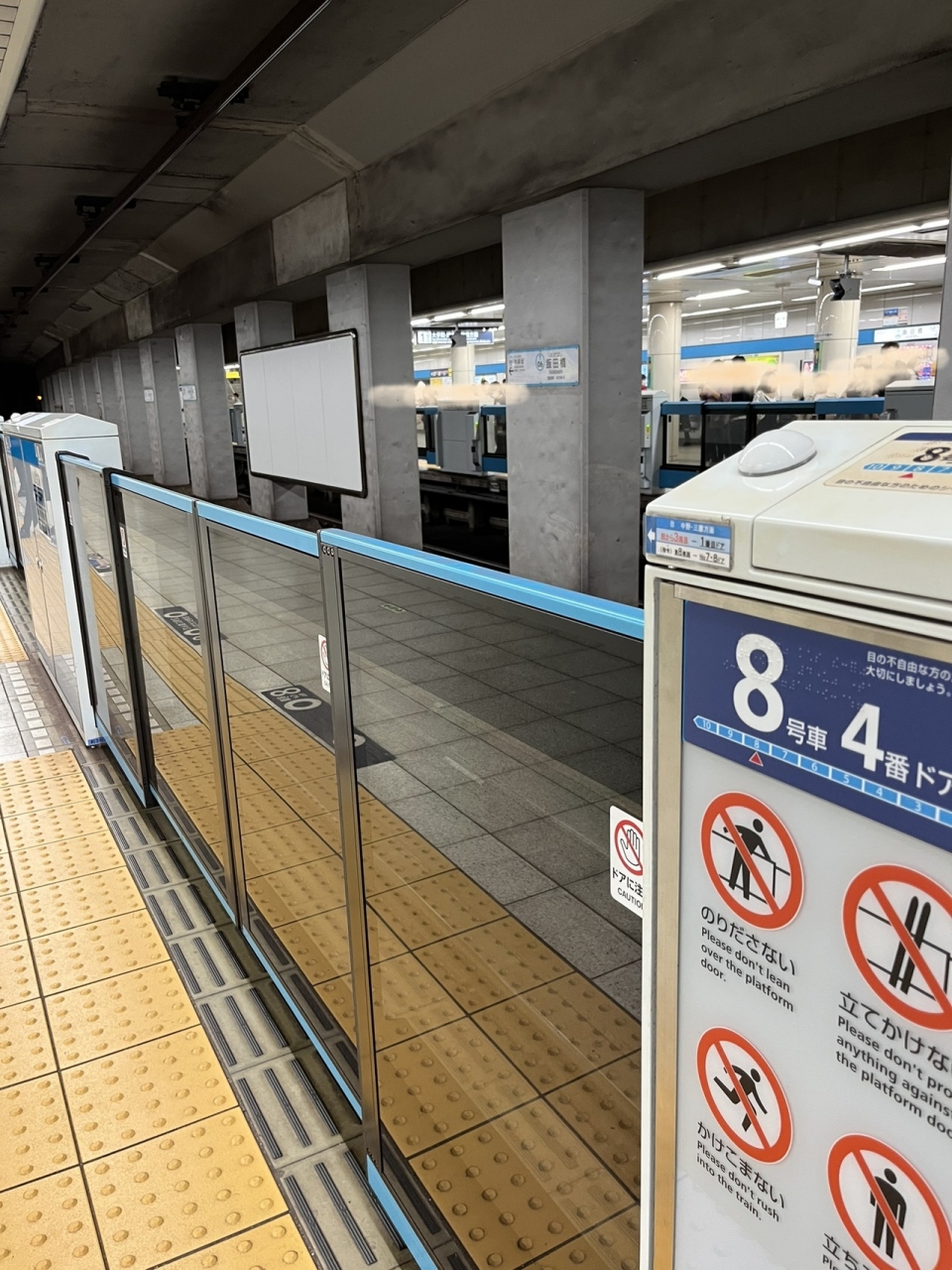 「飯田橋駅」では ホームドア があって 安心ですね◎