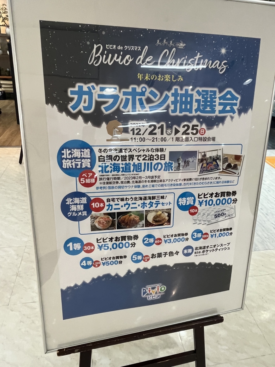 〈ビビオ de クリスマス〉 年末のお楽しみ 『ガラポン抽選会』の予告ポスターが貼ってありました。