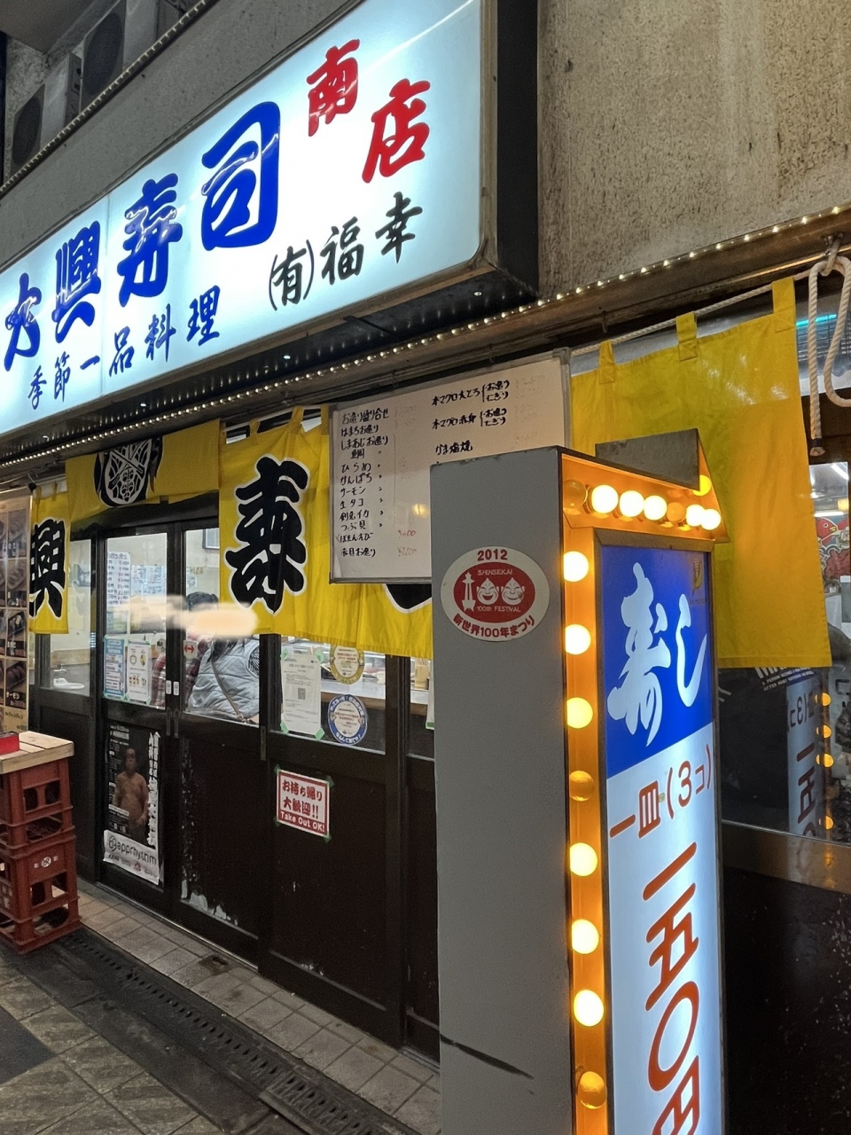 まずは「ジャンジャン横丁」の お気に入りのお寿司屋さんで、お刺身とお寿司食べて…