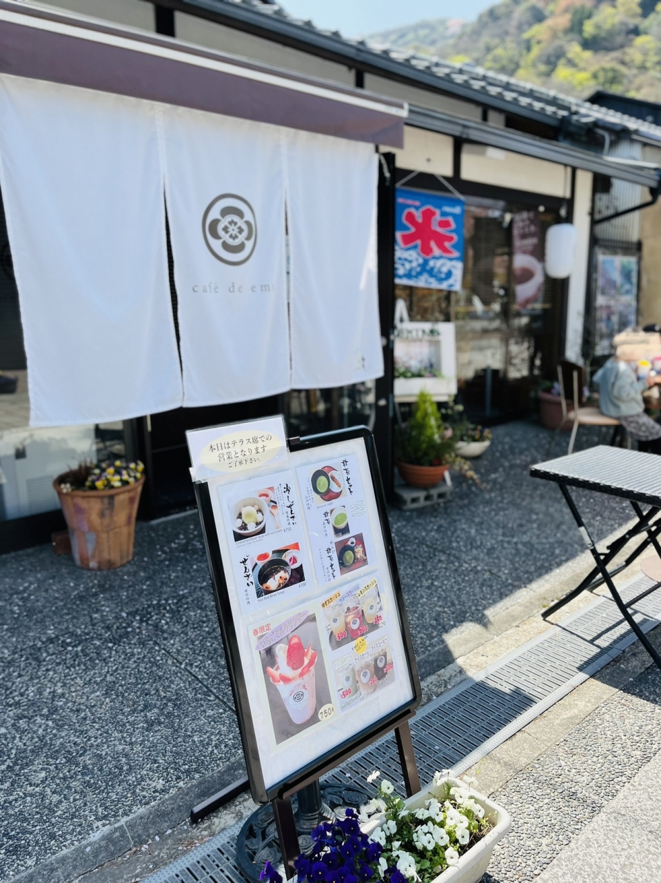 「抹茶」「ぜんざい」「みたらしだんご」「ソフトクリーム」などを販売している お店もあります。