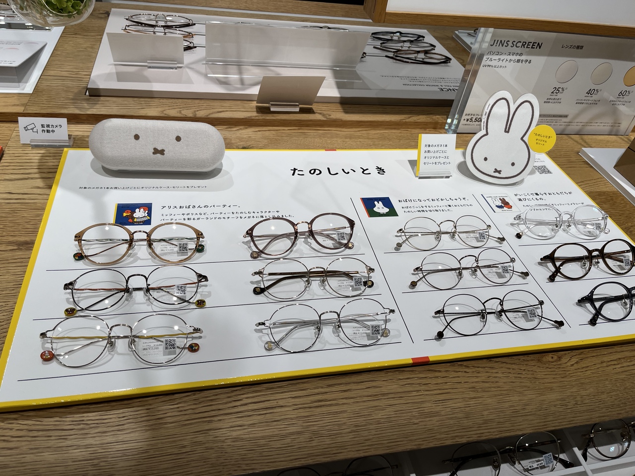 「JINS」のミッフィーとのコラボ メガネ…対象のメガネ購入すると オリジナルケースとセリート プレゼントだそうです♪