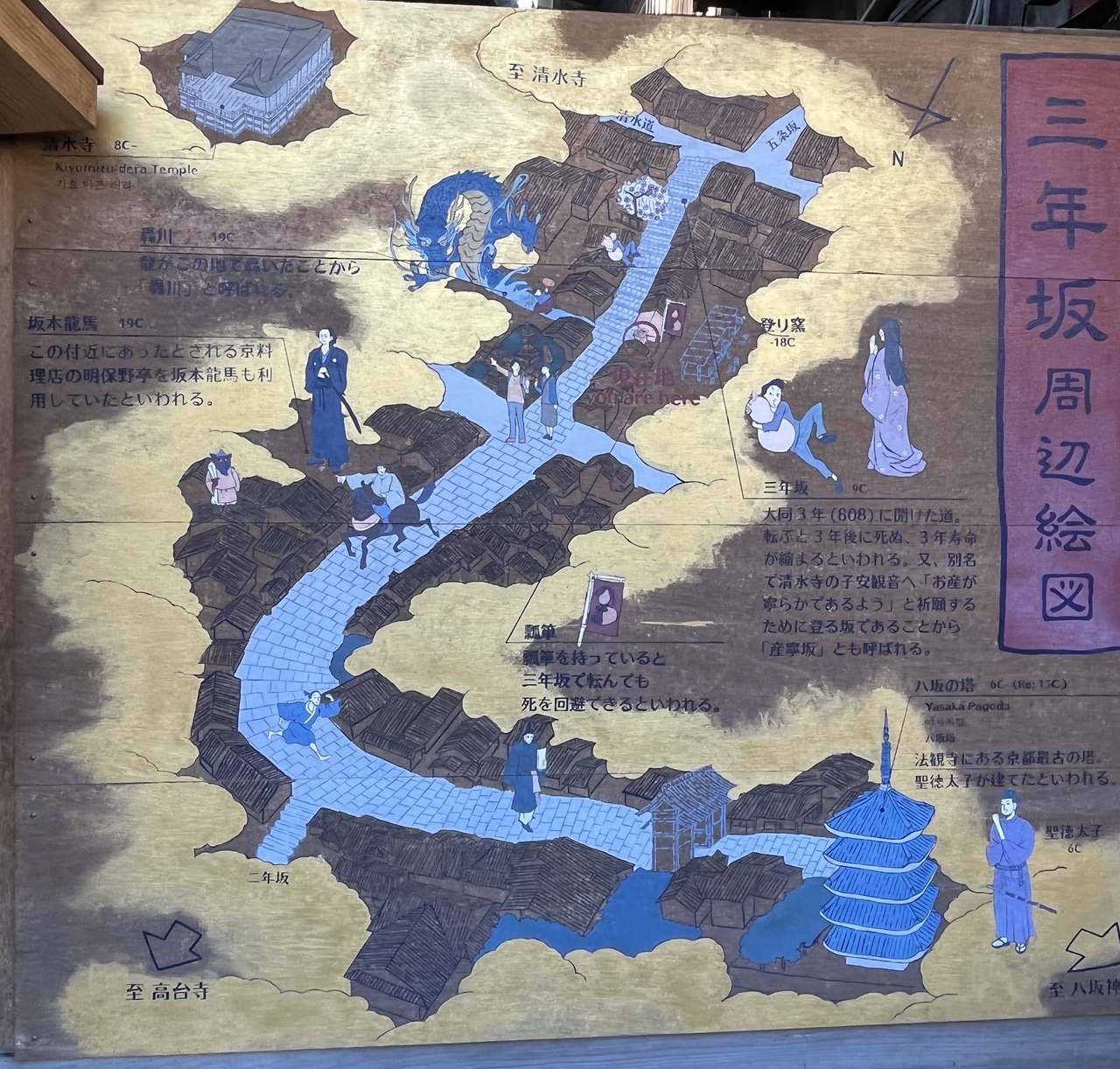 「三年坂」で転ぶと「三年のうちに死ぬ」「三年寿命が縮まる」と言われる逸話がありますが、