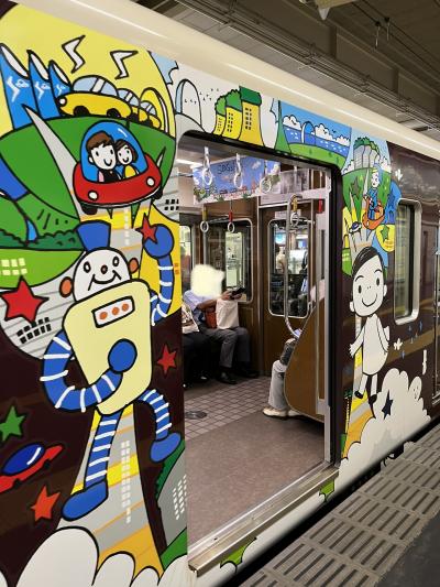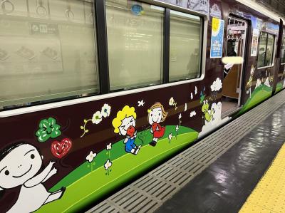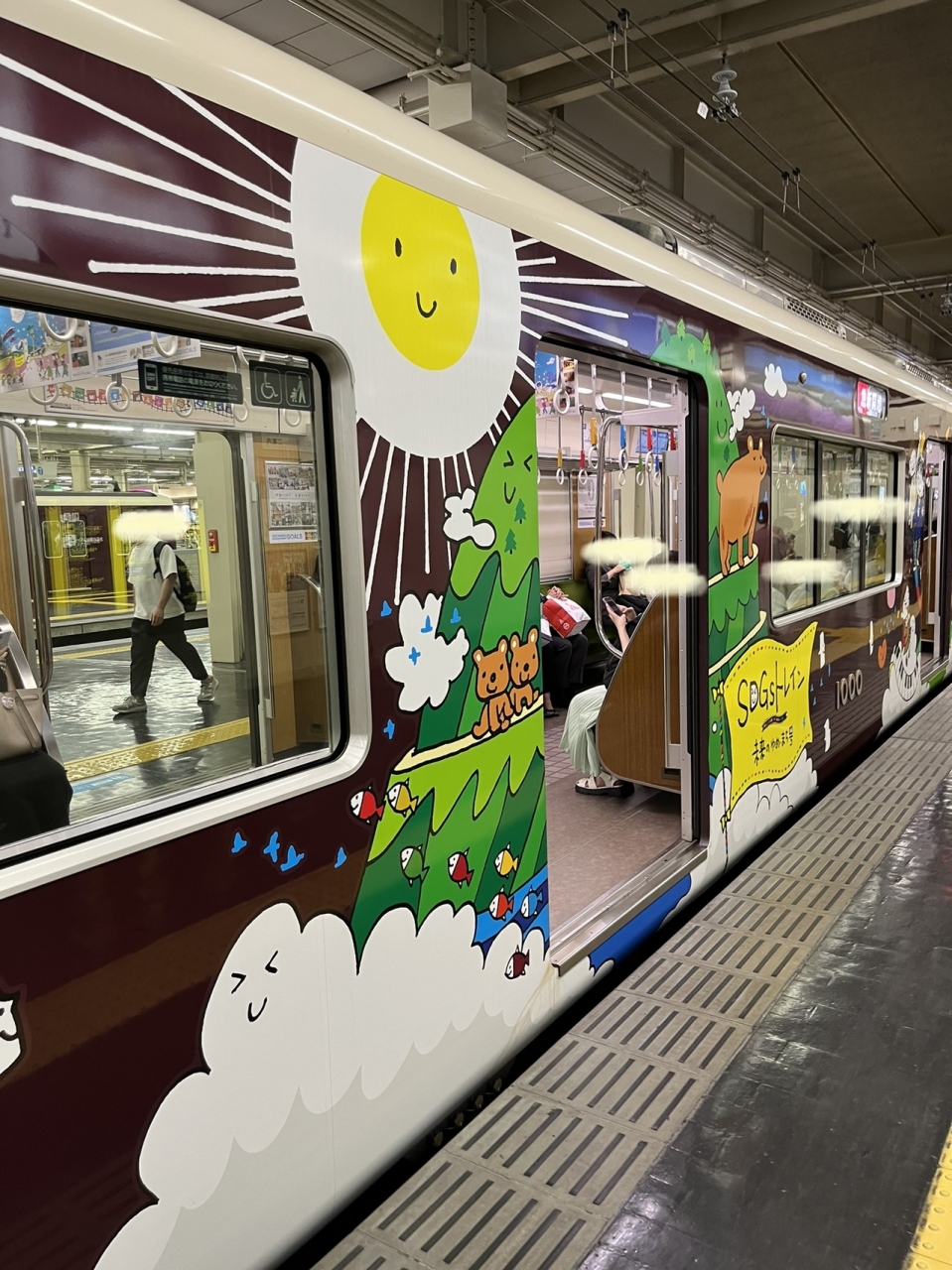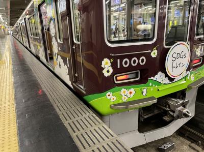 「SDGs トレイン」で 車体外観は 普段の阪急マルーンとは 雰囲気が違う可愛いデザインでした。