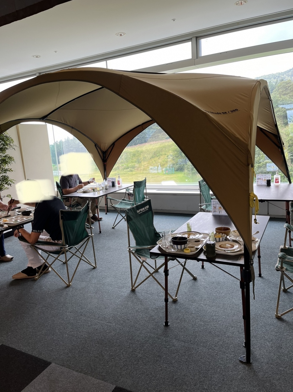 お食事会場には アウトドアの雰囲気のエリアもありました。