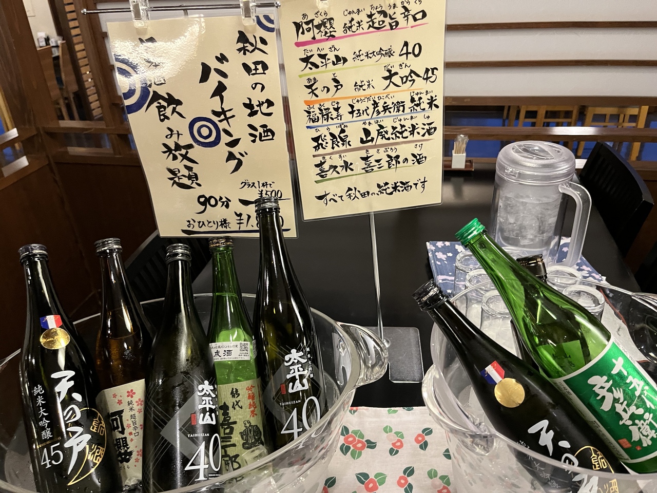 なので、夕食時の〈秋田の地酒 バイキング◎飲み放題〉¥1800に 使用しました。