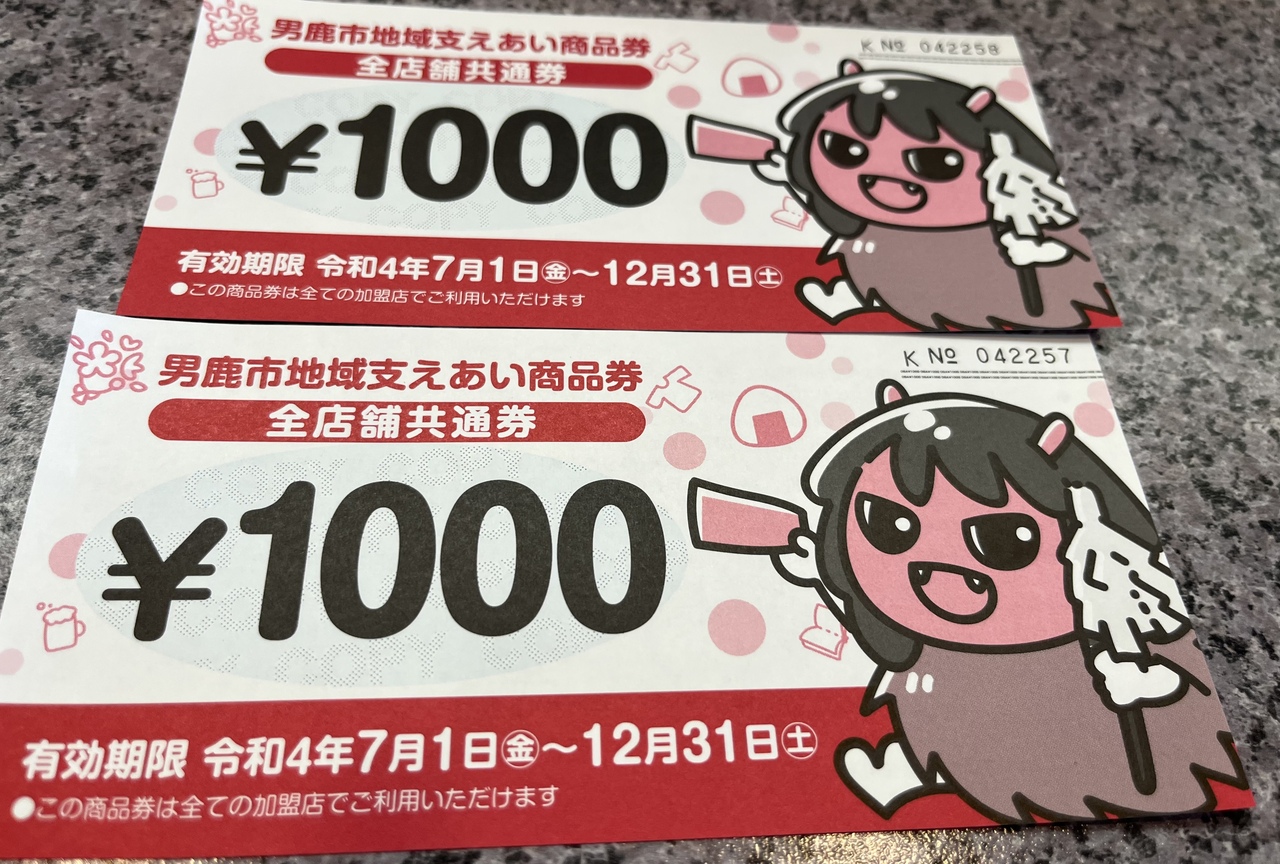 チェックイン時に、〈男鹿市地域支えあい商品券〉