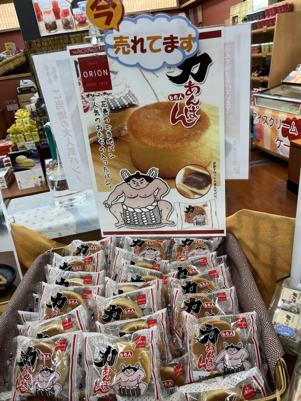 「力あんぱん (もち入り)」は 力士 のイラストで、人気商品のようです