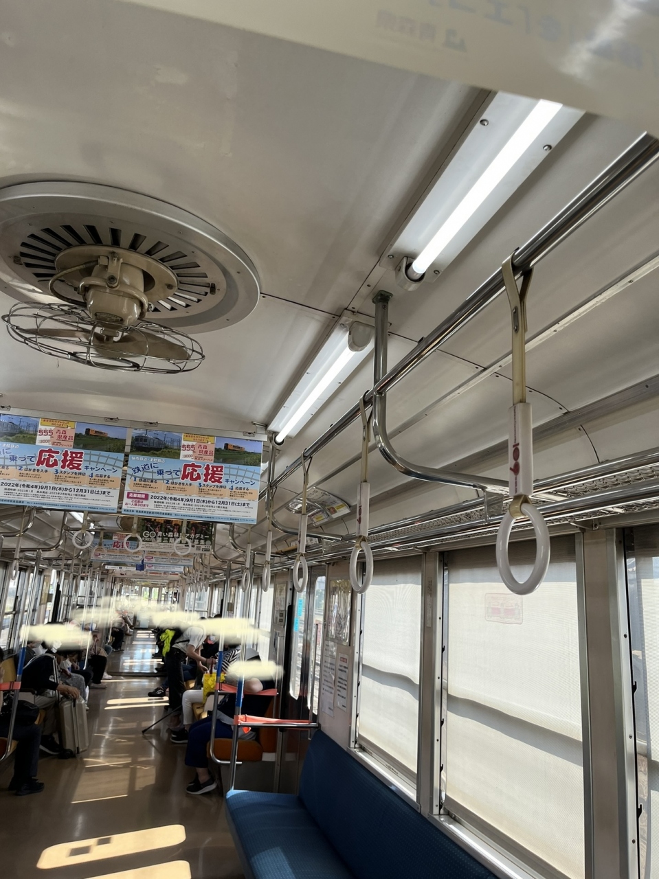 電車が動き出しても 車内は 陽が入ってきて モワッとした蒸し風呂状態!