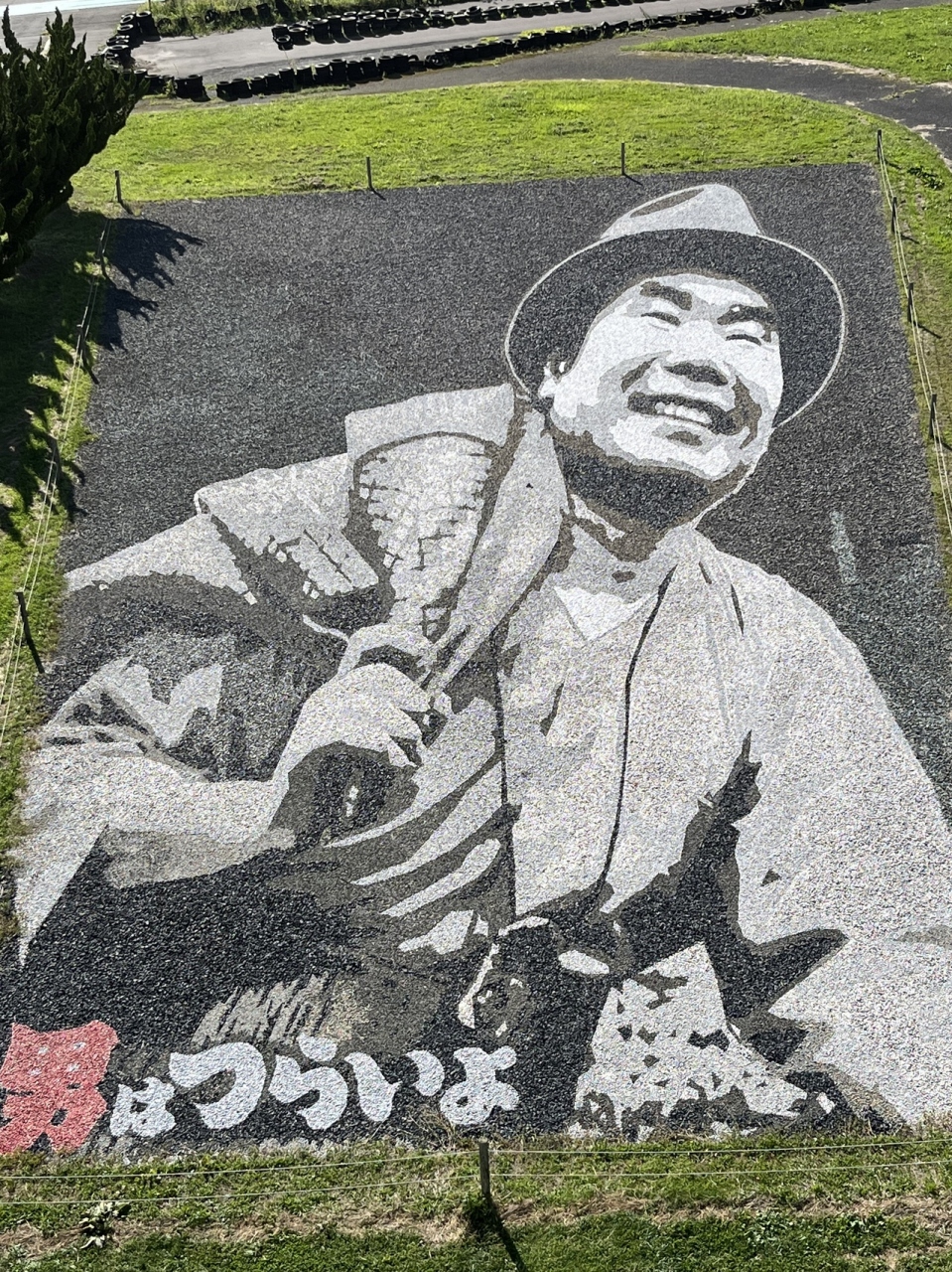 そして すぐ横には まさかの『男はつらいよ』の「寅さん」が 石アートで肖像画に!