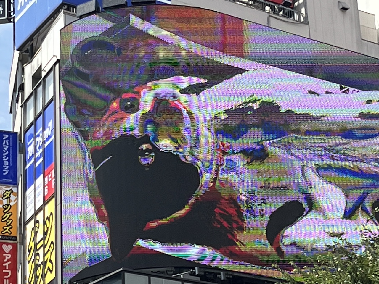 JR新宿駅 東口の大型街頭ビジョン【 クロス新宿ビジョン 3D巨大猫 】