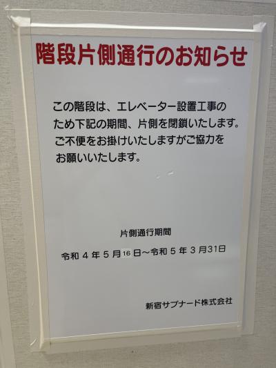 階段がエレベーター設置工事のため 片側を閉鎖して 階段片側通行でした。- 旅行時期