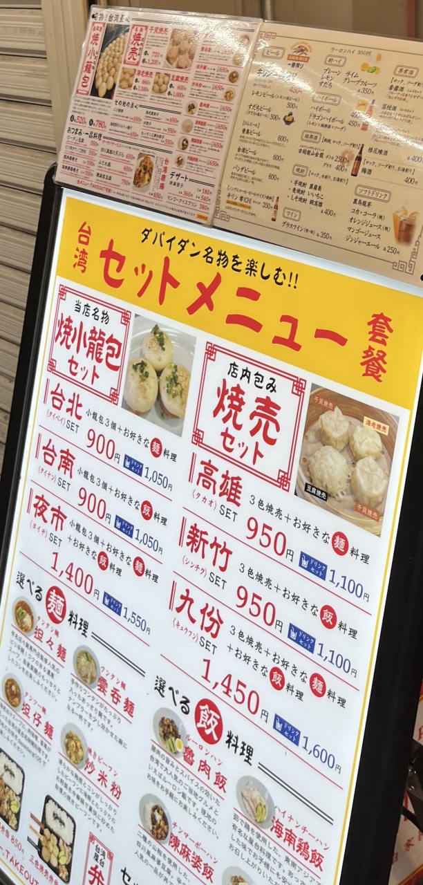 メニューを見ると 台北・台南・夜市・高雄・九份など