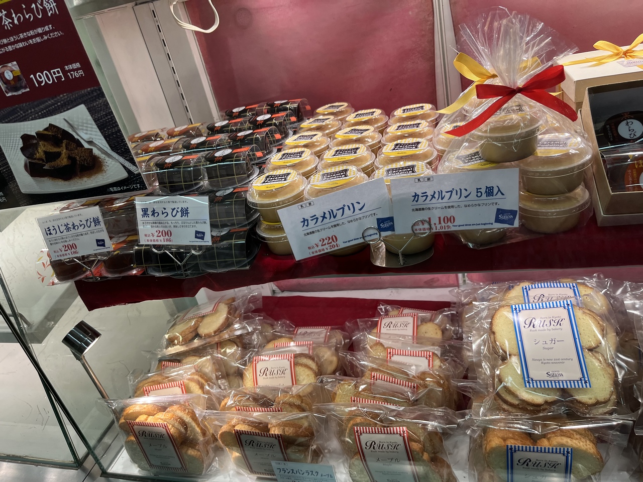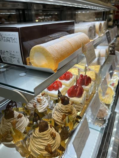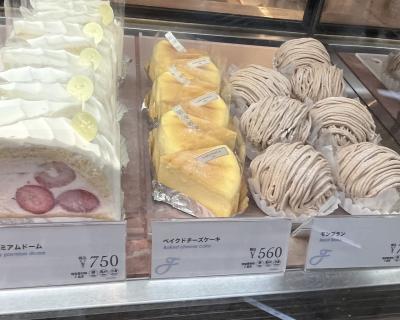 店内ガラスショーケースには 「ブルーベリーのシャルロット」「ベイクドチーズケーキ」「モンブラン」など どれも美味しそうです。