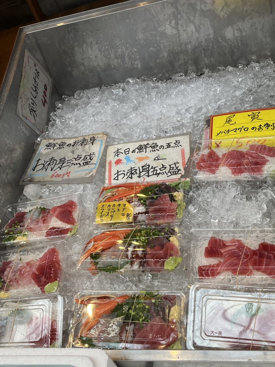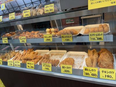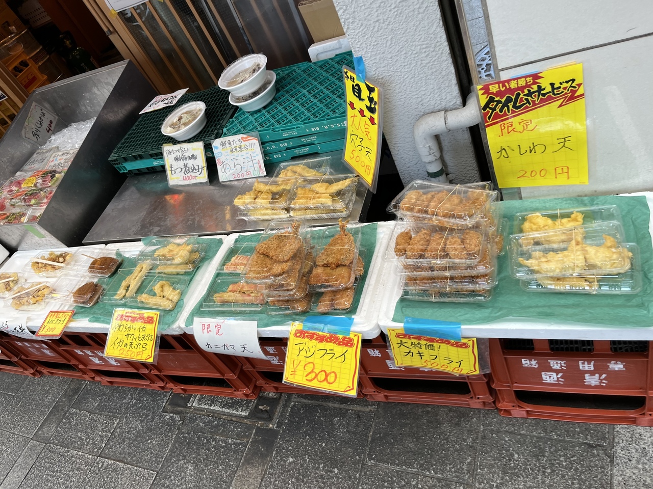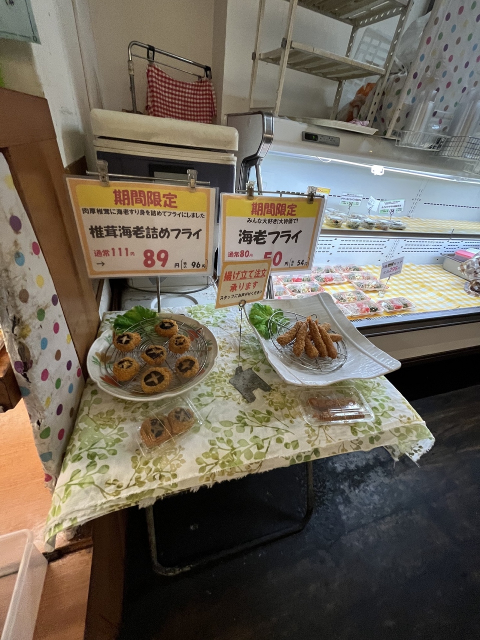 店先には 「アジフライ」「カキフライ」などのお惣菜が 並んでいました。
