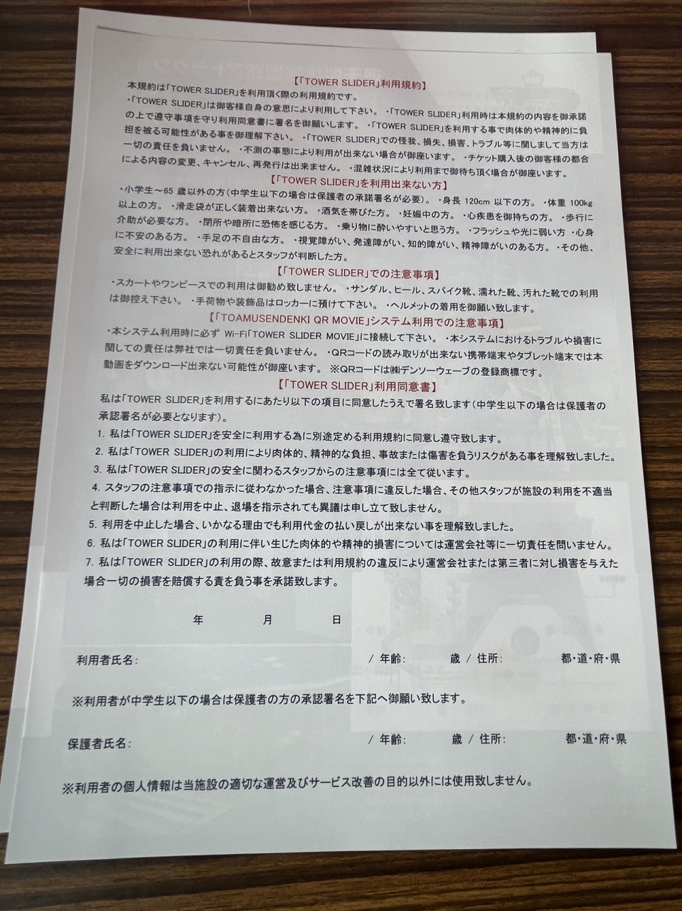 「TOWER SLIDER」チケットを購入して ロッカーに全ての手荷物を預けて、